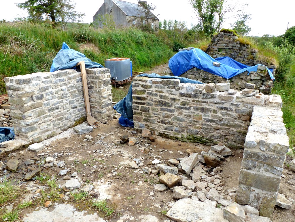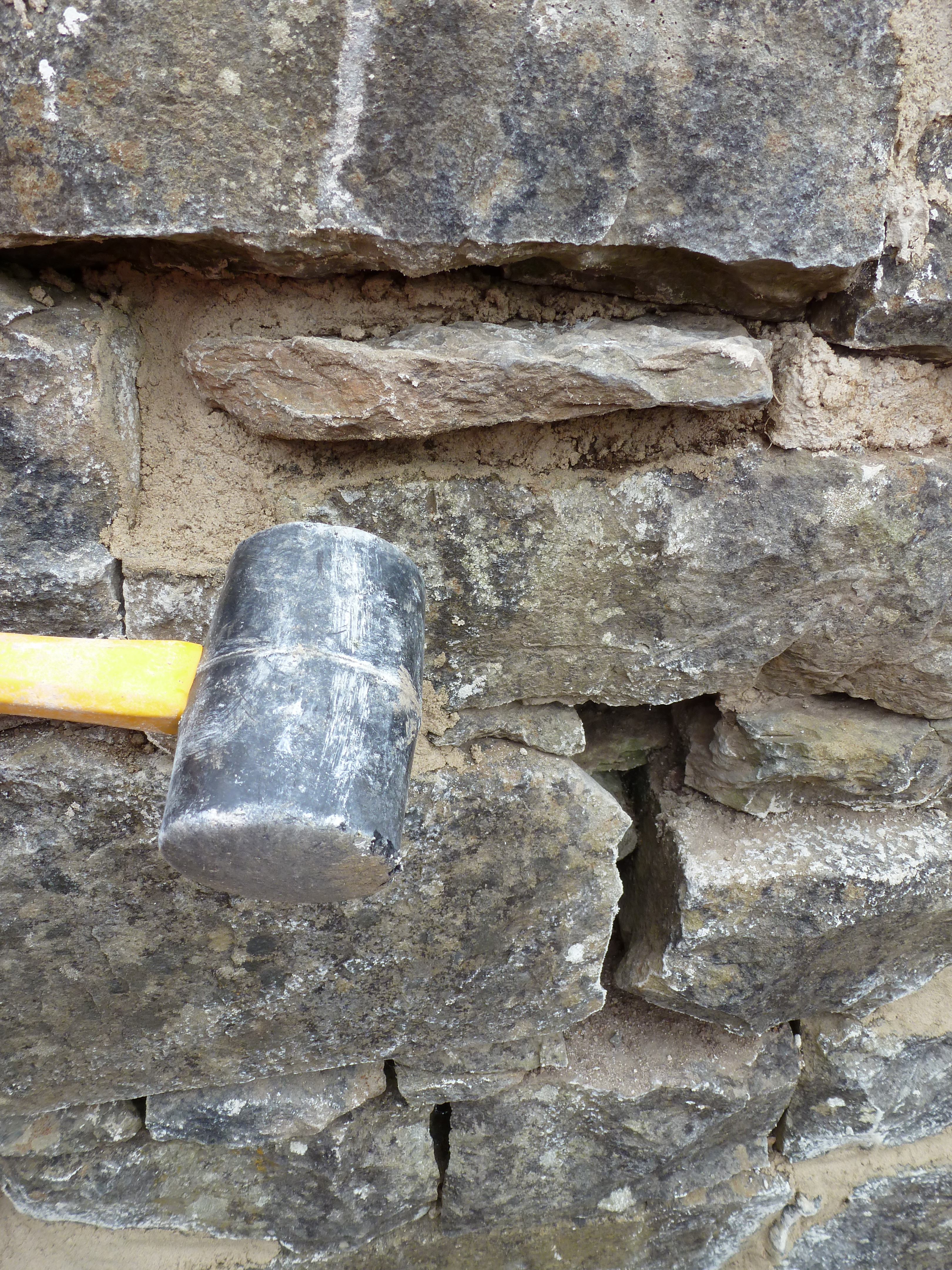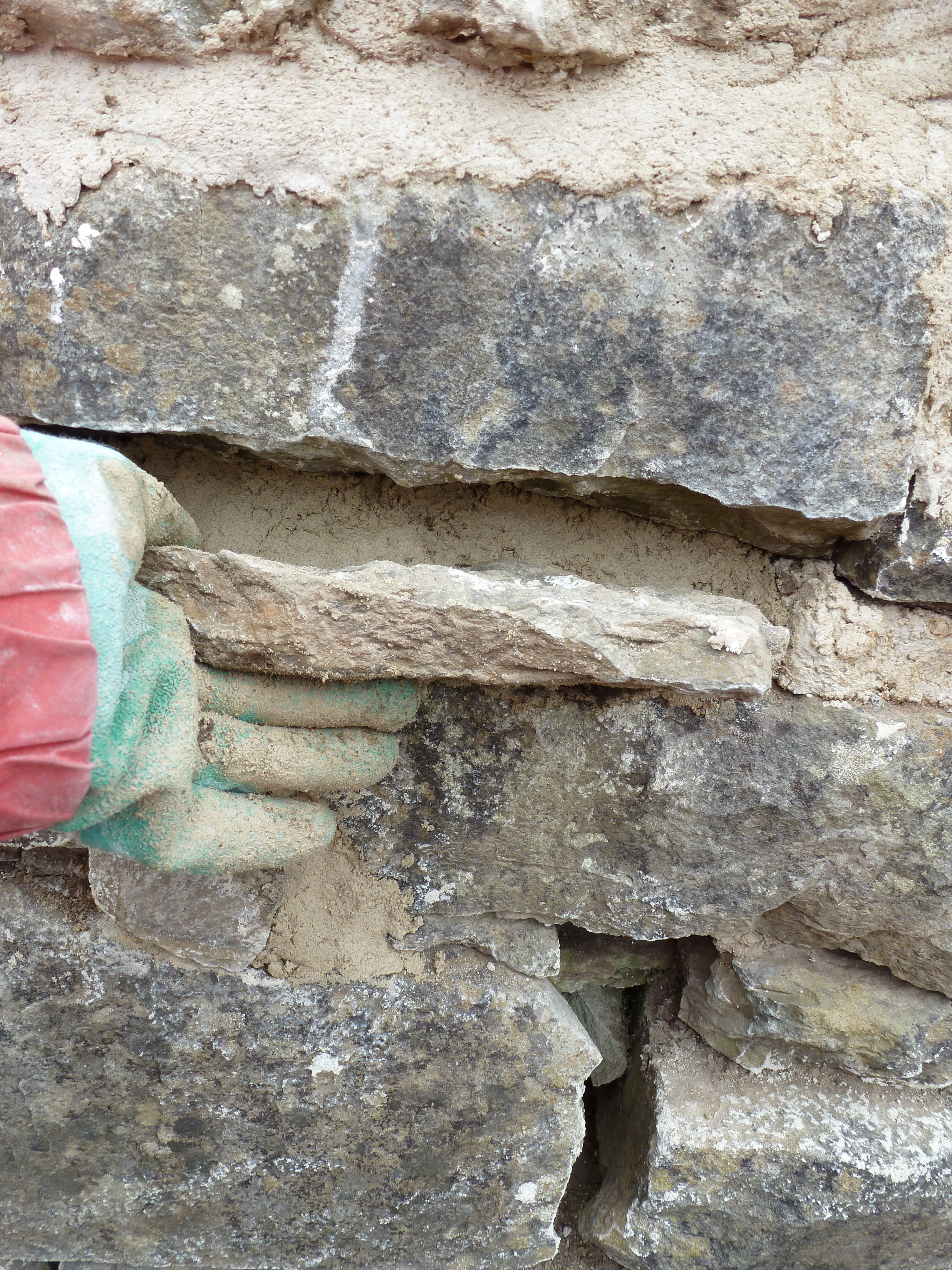 Good stone walls have very few vertical joints – always two stones over one, one stone over two.
