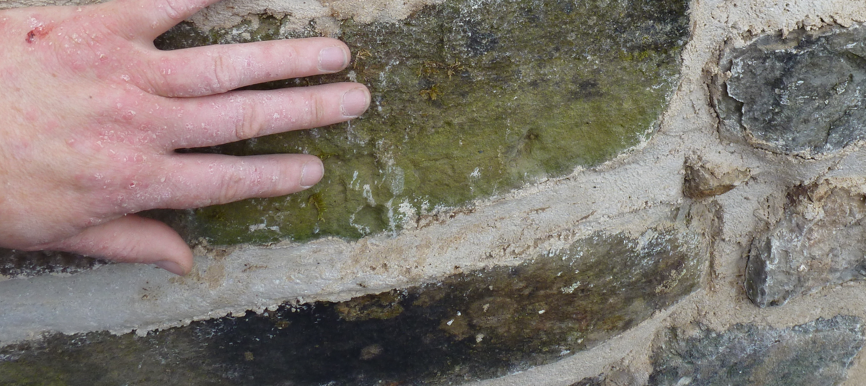 Joints of lime mortar do well not to exceed a certain size (1.5 cms roughly). Lime mortar can stiffen and carbonate better and it’s surface is less exposed to weather, when the joint size is kept small.