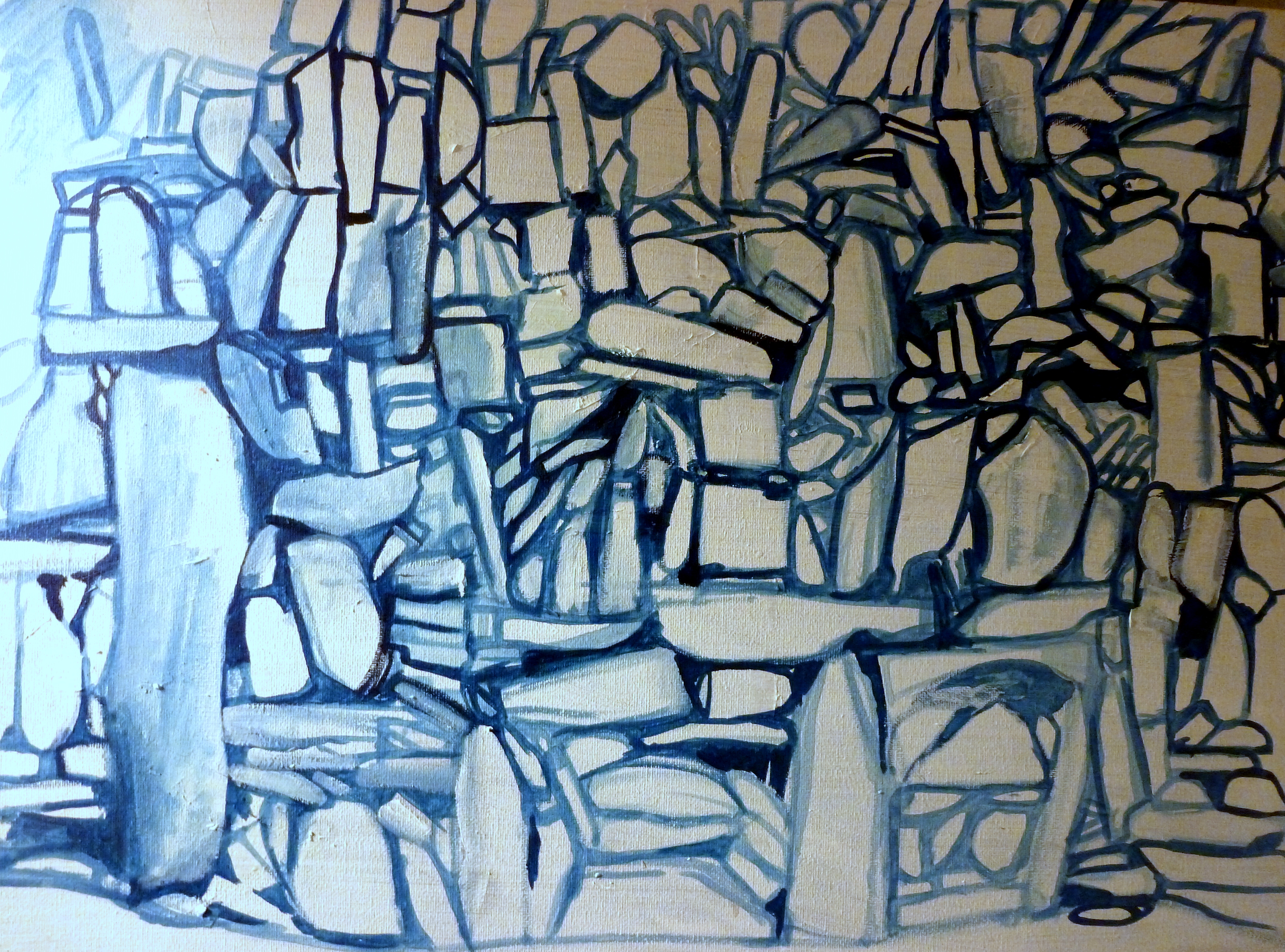 From October I was compelled to paint. Who I wondered, was the original artist? This fedin wall was photographed on Inis Oírr island – but whose hands crafted such chaotic beauty?