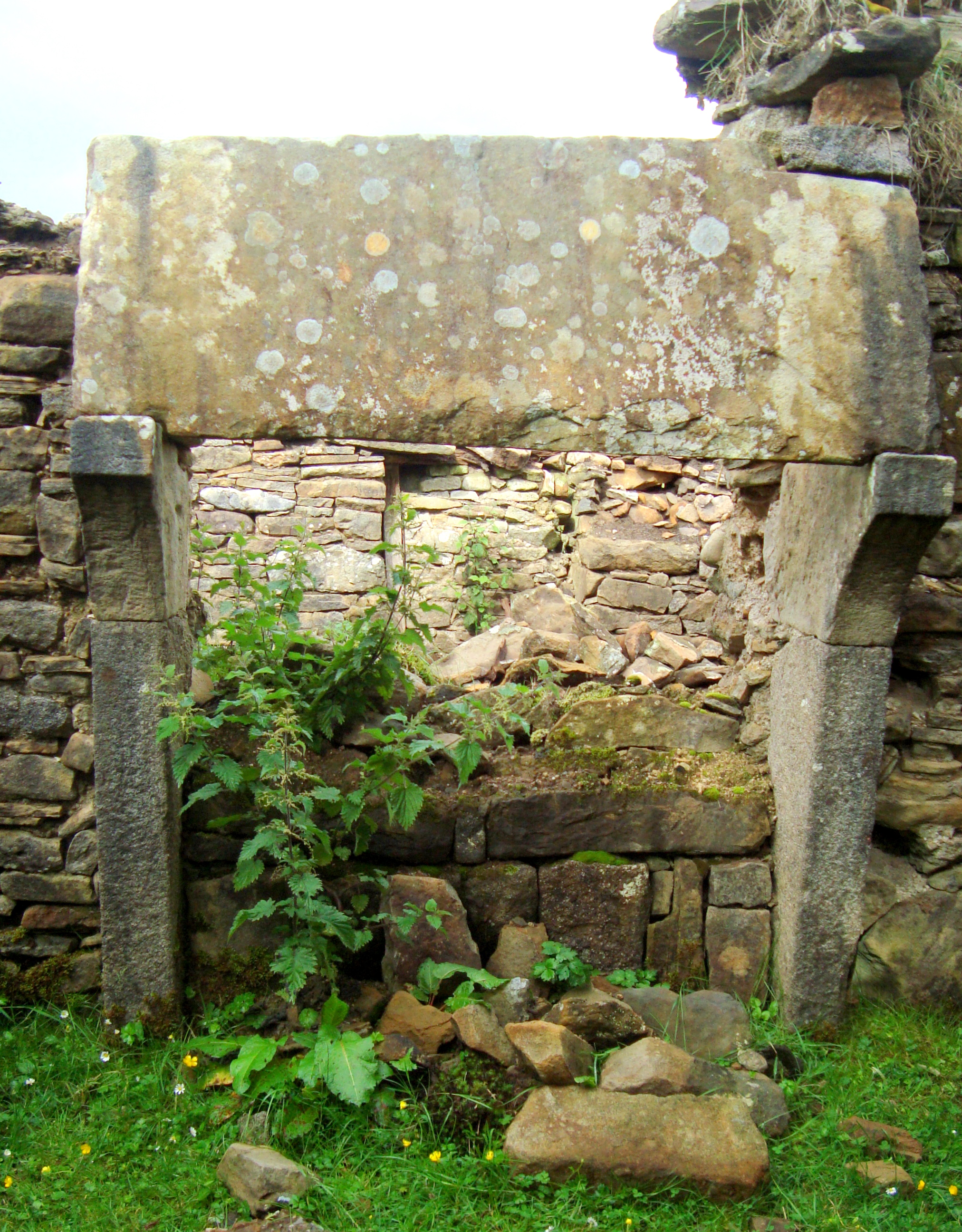 Workmanship varied but the homes of quarry workers show expertly cut large flags. The above example has three corners notched and belongs to what was once a very fine long house.