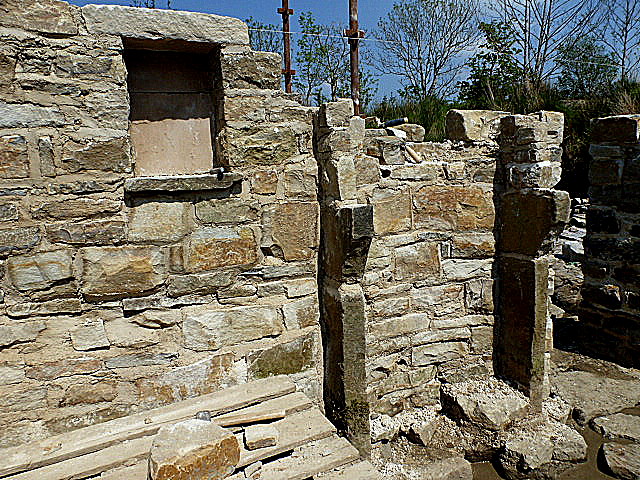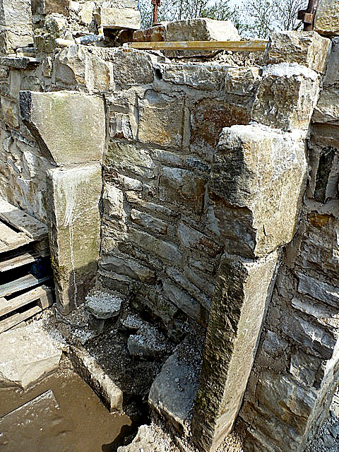 A bole is born (left) using a sandstone paving stone to the back of it.