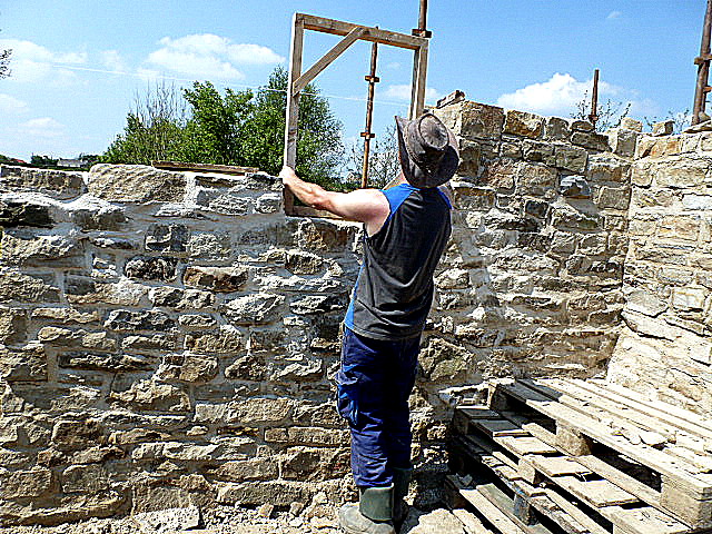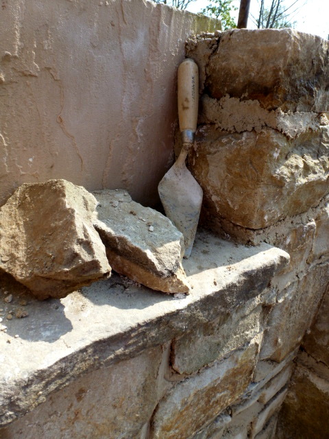 Our only worry is that with temperatures reaching 27 degrees the lime mortar is drying terribly quickly as we work.