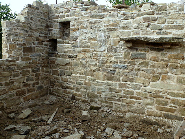 3. In the picture above of the westerly wall you can see that the two rooms have tie stones every forth course or so, for strength.