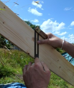 Especially important when building a rough-hewn yoke of a cottage like this is to ‘balance’ both wall plates. They should be fixed in perfect parallel (left) in case of a discrepancy between gable widths. (3 inches here!)