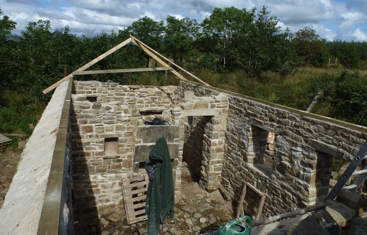 We found an old capstone amongst our quarry pile. Near the apex seems a grand spot for it. Perhaps Kieran might like to carve upon it when the cottage is complete.