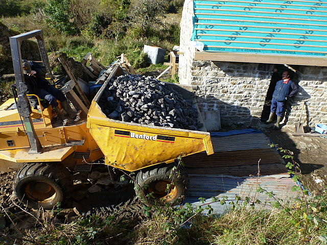 Where would we be without Brian – our trusty quarry man – to ferry our building materials  across hill and dale, not to mention down the terrible awkward lane way?