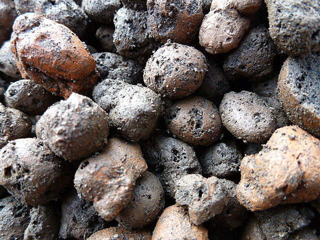 A bulky cargo of LECA (Lightweight Expanded Clay Aggregate) – there are various kinds but this type is coated, which gives water-repelling and non-capillary properties. The air trapped within the fired clay balls gives it thermal insulating properties.