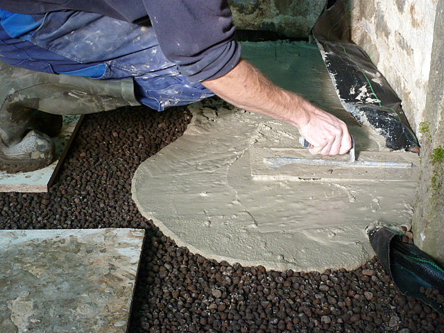 This layer is 10 cm deep and acts as a moisture break as well as insulating the floor.