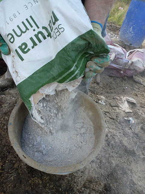 A pour-able ‘slurry’ is mixed to a ratio of 2:1 (sand:lime NHL5)
