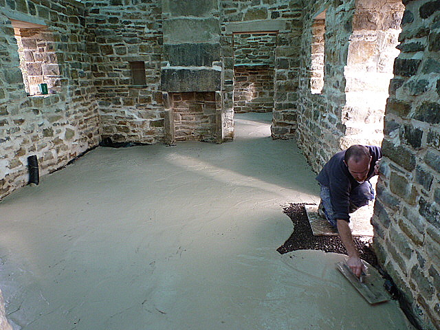 Far from protecting an old building, a concrete floor increases dampness.  Because of the interface between walls (with little or no foundation) and floors, water trapped beneath concrete is forced directly into the walls.  We need a lightweight, breathable alternative – one which allows water vapor to escape and also insulates.