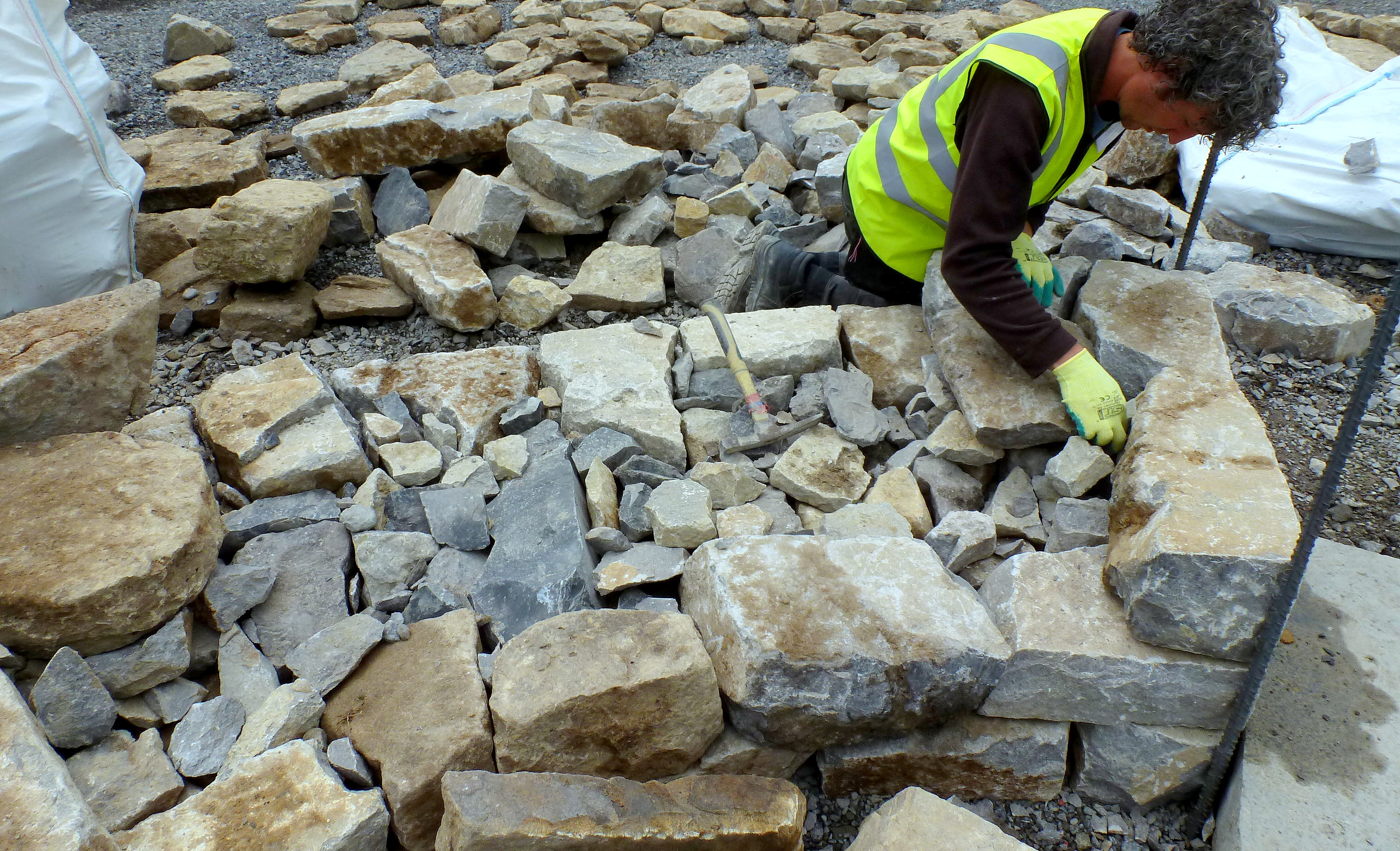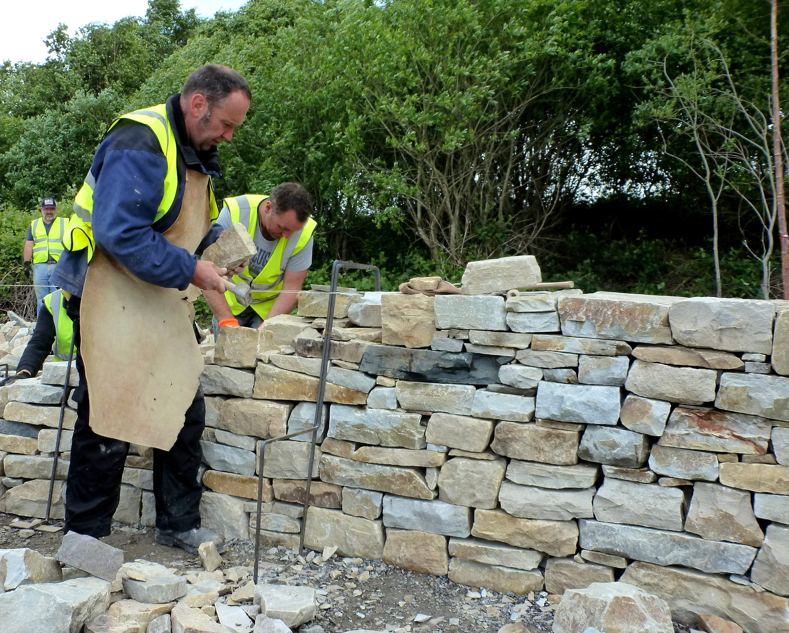 There is no delay for the Leinster Wall with a bouldery style, using limestone excavated from beneath the bog