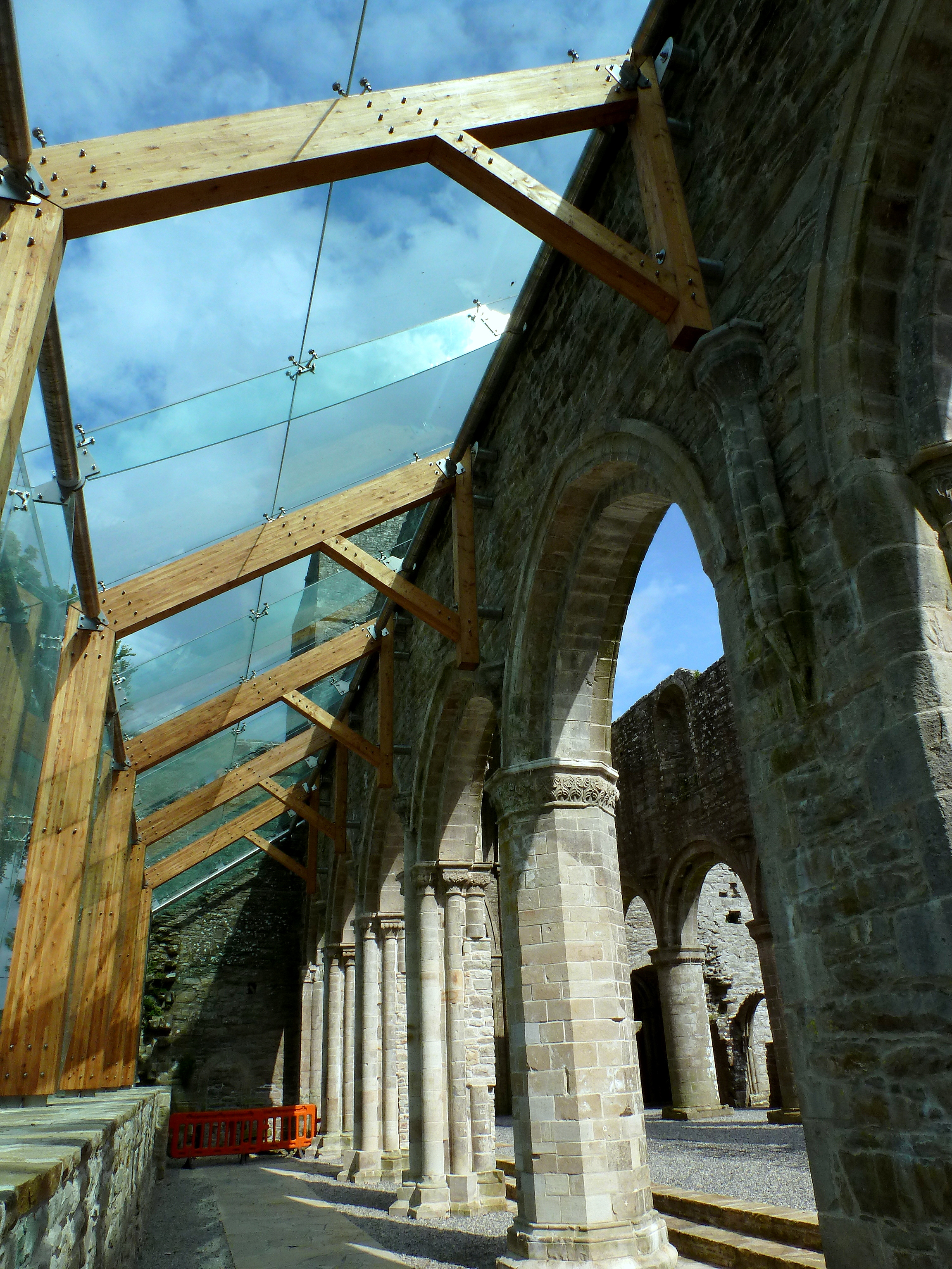 This glass structure replicates an Elizabethan lean-to addition, when the abbey was converted to a barracks in 1592