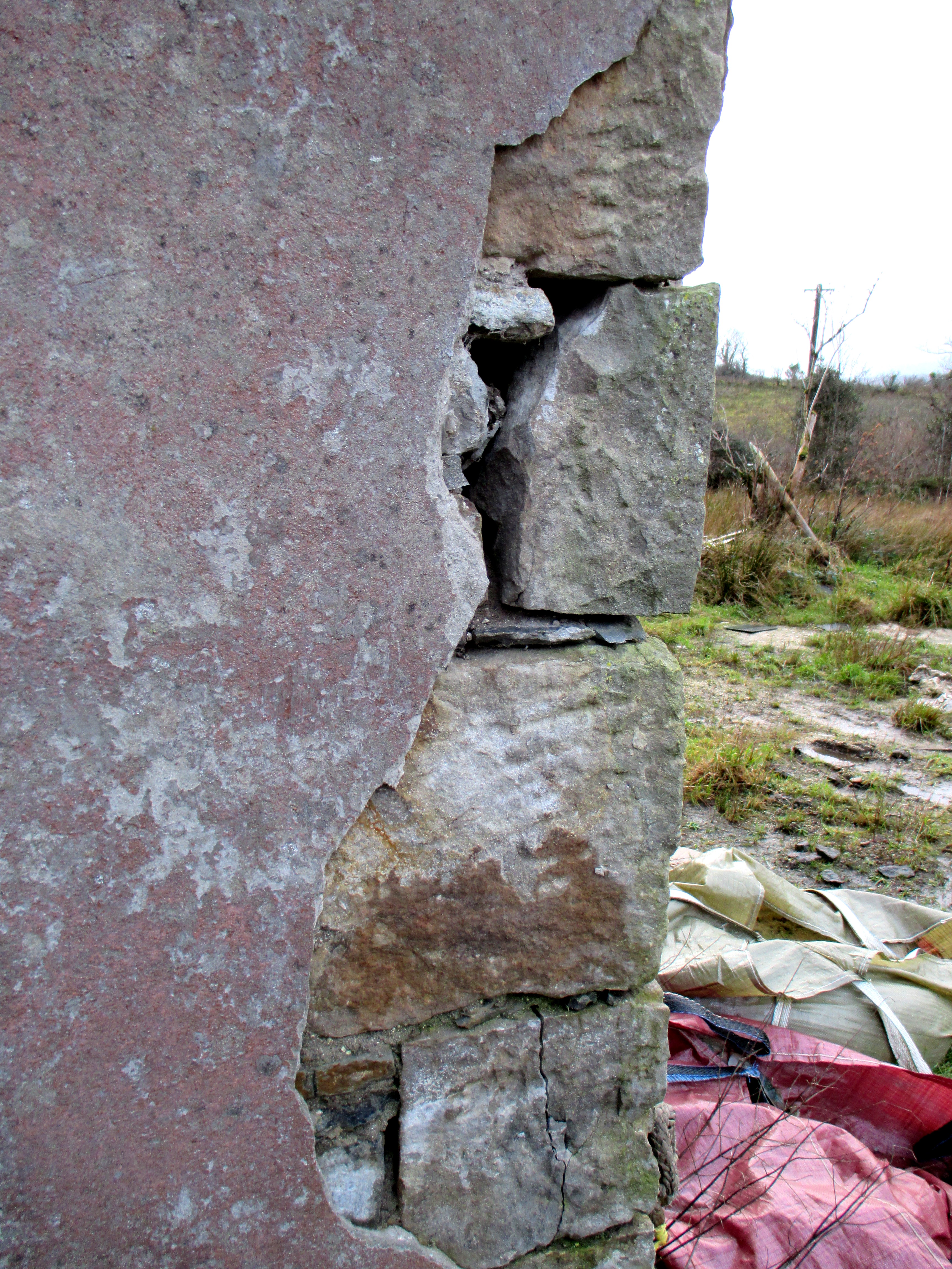 Inside you can see where walls have parted company with the front of the house – tie stones futile.