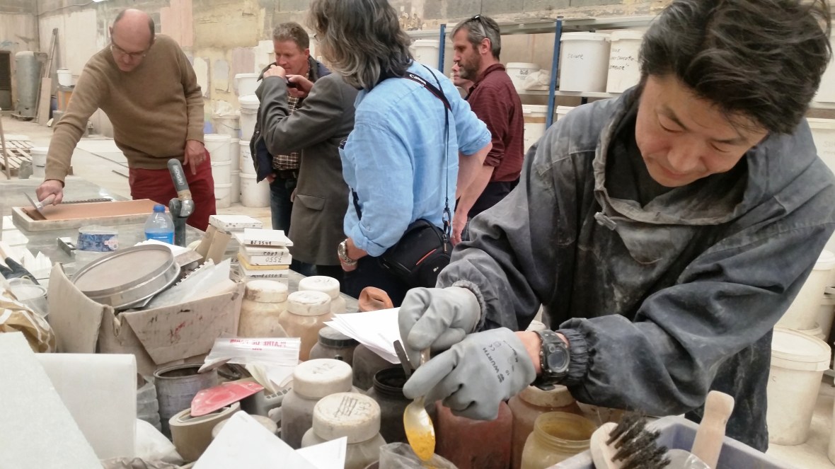(Tour guide and traditional mason Olivier Labesse shows us around the sample storehouse)