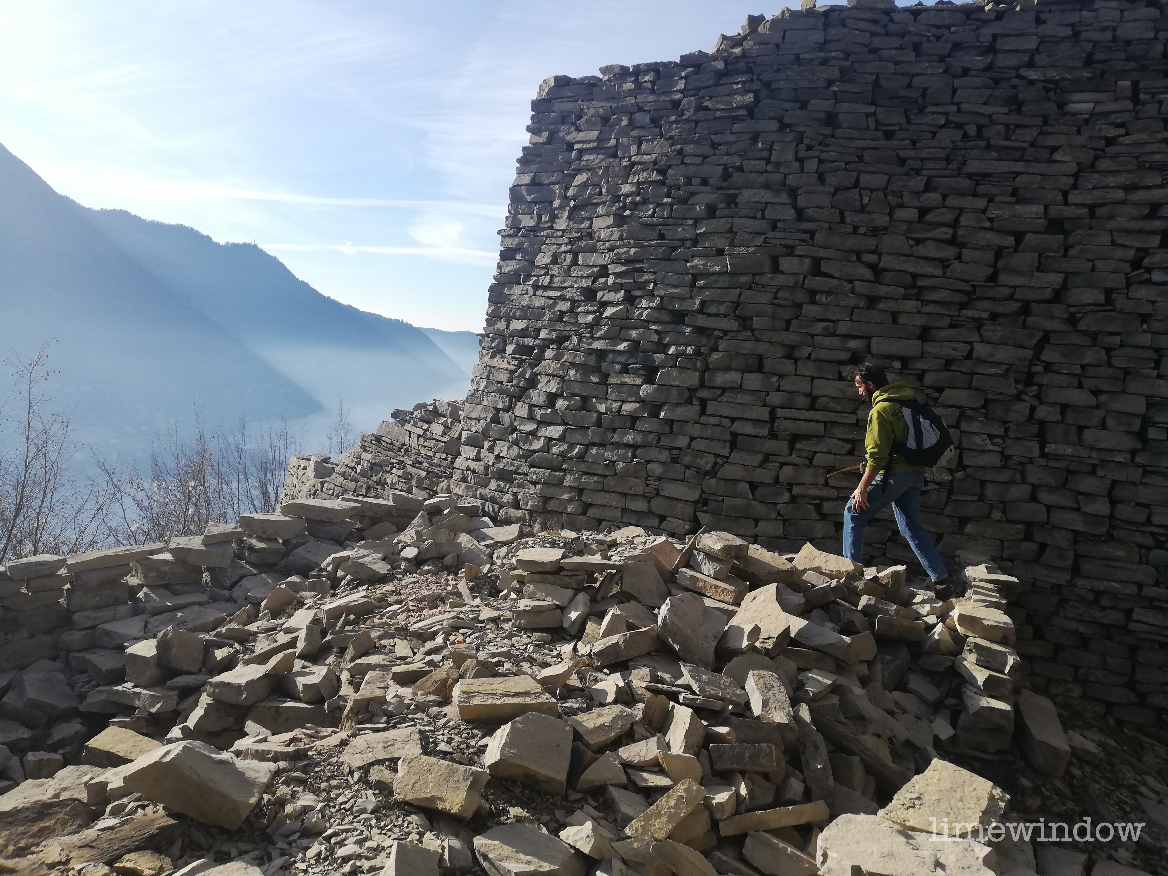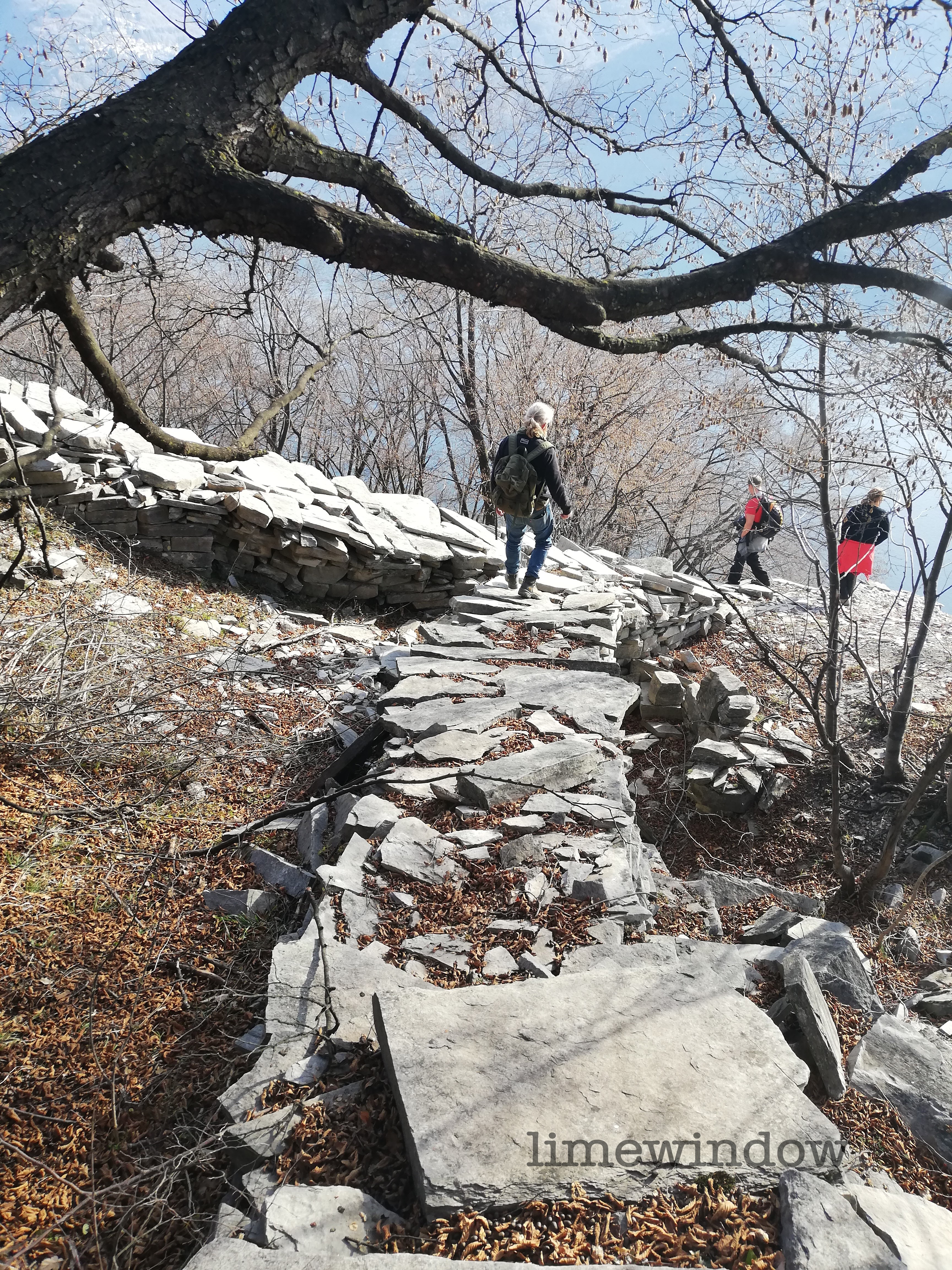 Huge slabs on the trail betray the past quarrying industry here. Dense and uniform in its stratification, and very useful for building, castles, walls and towers of the city of Como were built with this limestone.