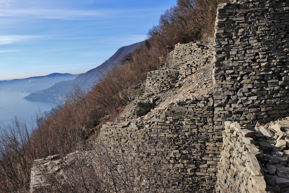 Our hosts invited us to the port town of Moltrasio, famous for its stone, where a trail has been opened by the Italian Alpine Club; Sentee di Sort. It climbs steeply above the town past broken terraces.